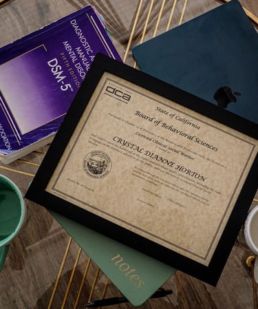 I’m Crystal—a licensed psychotherapist, a Black woman, a vegan mama, and someone who believes deeply in the power of healing and personal transformation. I earned my Master's degree in Clinical Social Work from George Mason University in 2018 and became a Licensed Clinical Social Worker (LCSW) in 2023.